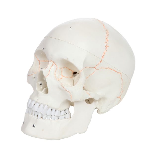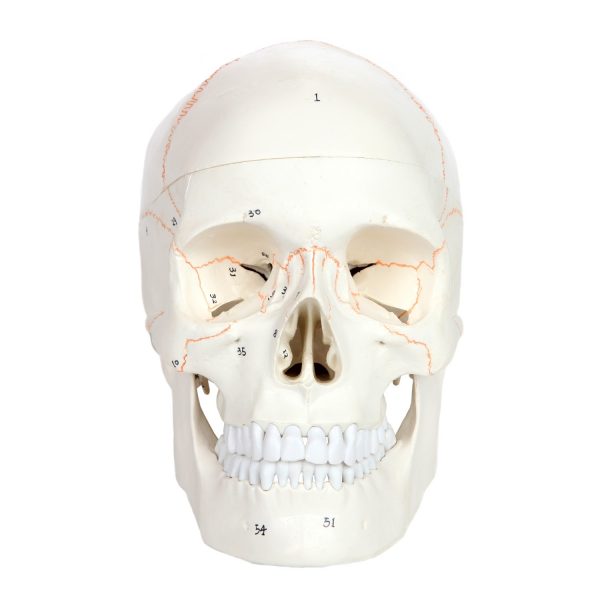 Detailed study of the human skull is necessary for a variety of scientific and medical fields. Advance your understanding with this detailed 3 part life size numbered skull from Axis Scientific. Offering a full range of anatomical features, as well as a detailed key card to help identify the 55 numbered features, this skull is a great study aid for medical students, and is useful for patient education by professionals.