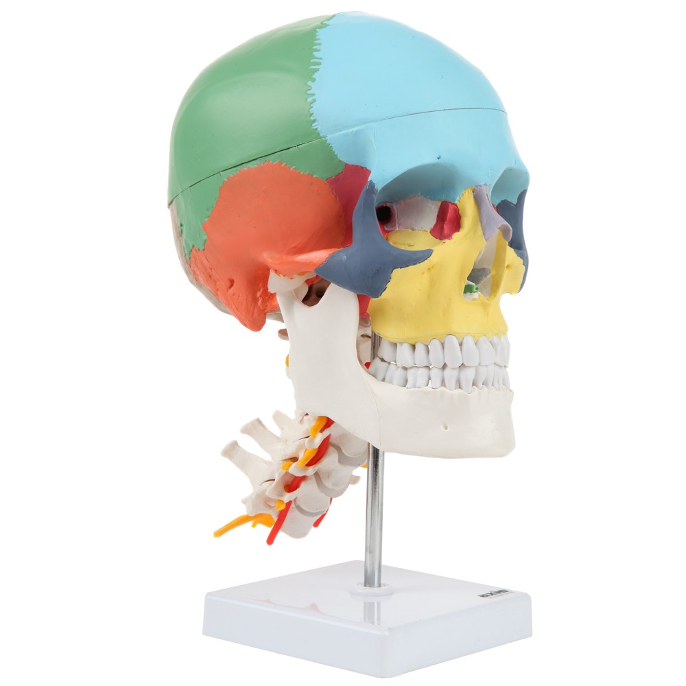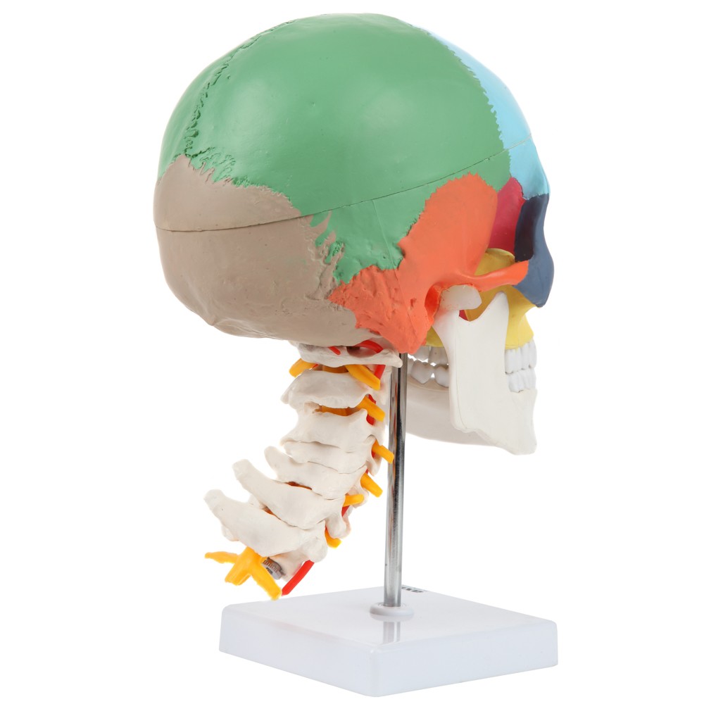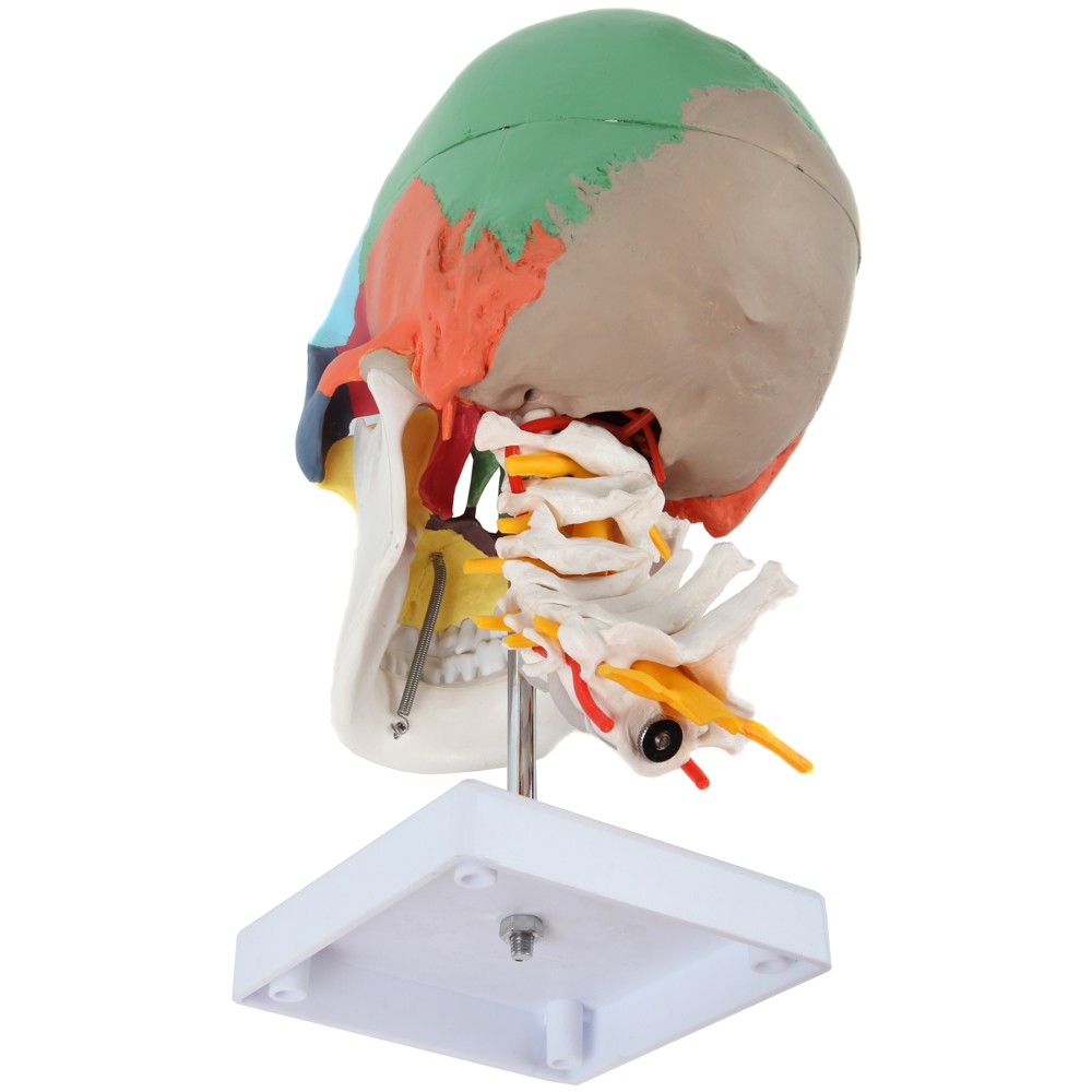 Axis Scientific has taken its high quality 3-piece didactic human skull model and mounted it on a flexible cervical spine that includes details of the nerves and vertebral arteries. Axis Scientific skulls are crafted from a hard and durable plastic, and they are exceptional depictions of human skulls, perfect for students, instructors and health practitioners. Axis Scientific integrated the skull on a flexible cervical spine that can be easily moved to resemble the natural, or problematic positioning of the head and neck. The skull’s fissures, foramina, processes, sutures are all accurately represented and color coded. The model also shows the hindbrain, spinal cord, cervical nerves, vertebral arteries, basilar artery and rear cerebral arteries. This skull is mounted on a sturdy white base. The model weighs 3 pounds and has dimensions 9 x 6 X 13. Axis Scientific offers a full range of budget friendly, detailed anatomical models, great for medical students and professionals. Axis Scientific Anatomy models all come with 3-Year Warranties. Contact our expert support team for advice on this and our other Axis products.