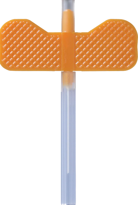 - When the needle appears to have entered and passed through the vein, slightly withdraw it—without removing it completely—and adjust its position to align with the vein.