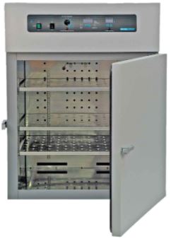 The forced, blower-assisted airflow design offers excellent temperature uniformity and fast recovery. A turbo blower and heavy-duty motor combine to direct air over the shelves and samples for even, constant drying, curing and baking. These units are especially ideal for glassware drying.